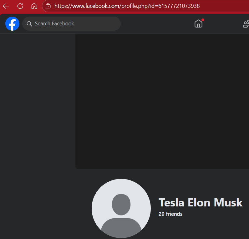 Here we have another fake Elon Musk profile that has a profile user ID in the URL.